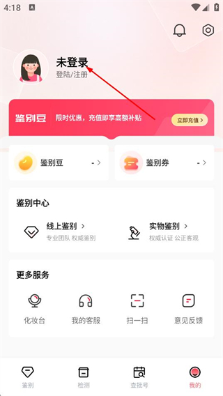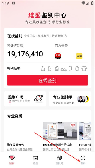 2、在维鉴鉴别中心首页,点击底部我的,进入个人中心页面。