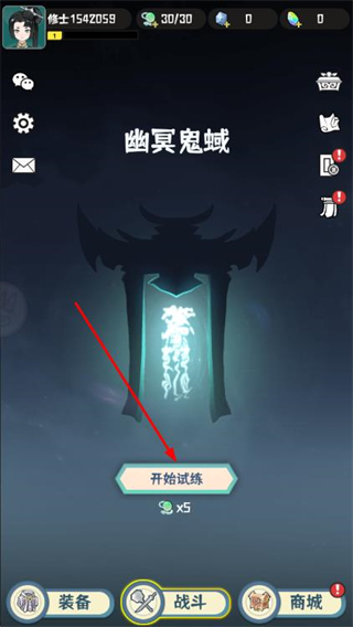 1、进入游戏主界面,消耗对应道具点击开始试炼,开启仙门挑战关卡。
