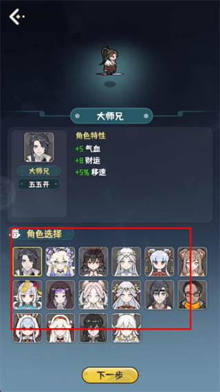2、在角色选择界面挑选心仪的修仙角色,点击下一步,确定出战角色。