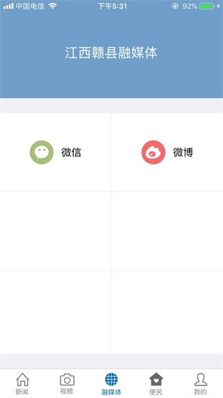 1、打开赣县融媒体,点击底部我的,进入个人页面。