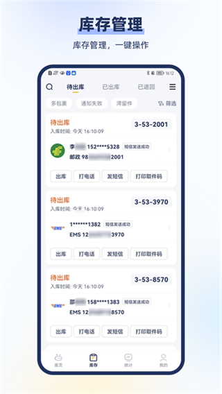 实现手机端、PC端、出库仪等多设备数据实时同步,驿站管理员随时随地查看运营数据、处理订单,快递员实时接收寄件订单,全链路信息互通无延迟。