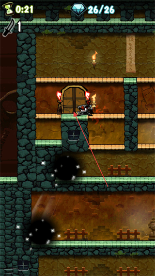 1、操控忍者移动,收集场景中的钻石,当前目标为收集26颗钻石,同时注意计时进度。