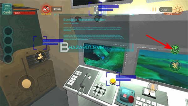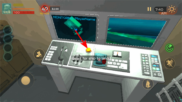 3、紧跟红色箭头指引,点击控制台的黄色按钮,可触发飞船着陆的加载流程,这是进入下一场景重要操作。