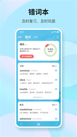 融合抗遗忘算法与多元助记体系,针对不同单词动态调整复习节奏,配合词根词缀、语境关联等方法,大幅提升记忆留存率,解决记不住、易遗忘的核心痛点。