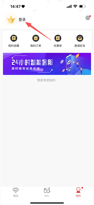 2、在个人中心页面,点击顶部登录按钮,进入登录选择界面。