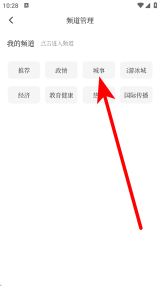 2、在频道管理页面,点击选择城事频道,进入城事频道页面。