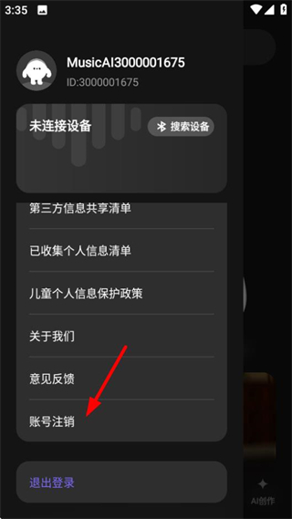 2、在菜单页面,点击账号注销选项,进入账号注销的重要提醒页面。