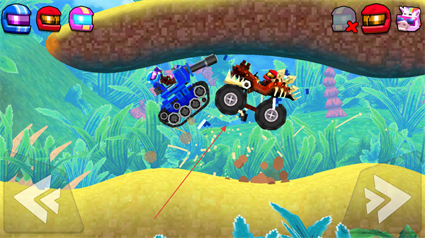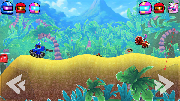 2、对局过程中,通过界面底部的左右箭头按钮,控制车辆在赛场内移动,调整自身位置。