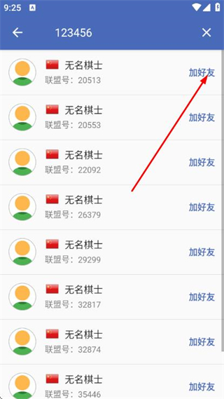 4、在搜索结果列表中,点击目标好友右侧的加好友按钮,发起好友添加请求。