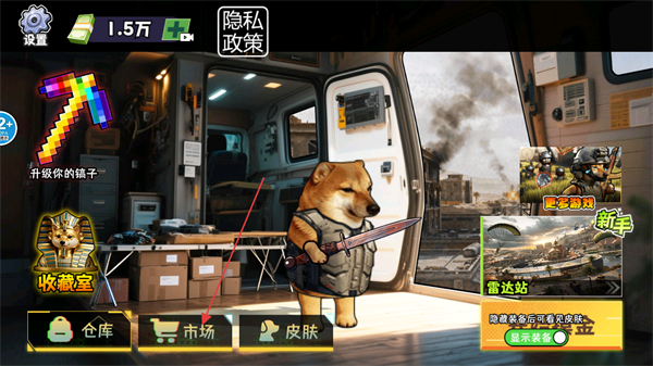 1、打开修勾逃生巨人危机游戏,在主页中我们需要先购买武器,点击市场进行购物。