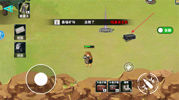 4、遇到敌人后点击右下角按钮进行击杀,击杀的敌人会变成盒子可以进行搜索物资。