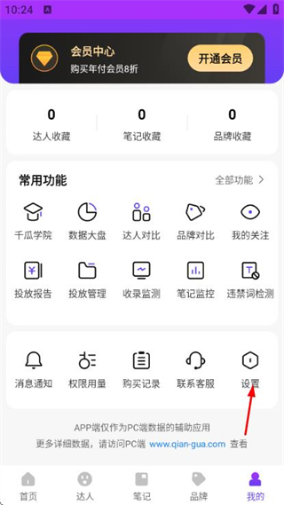 1、在千瓜首页点击底部我的,进入个人中心页面。