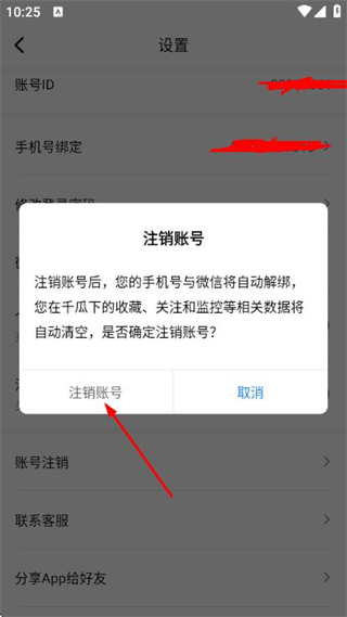3、在设置页面点击账号注销,触发注销账号的确认弹窗。