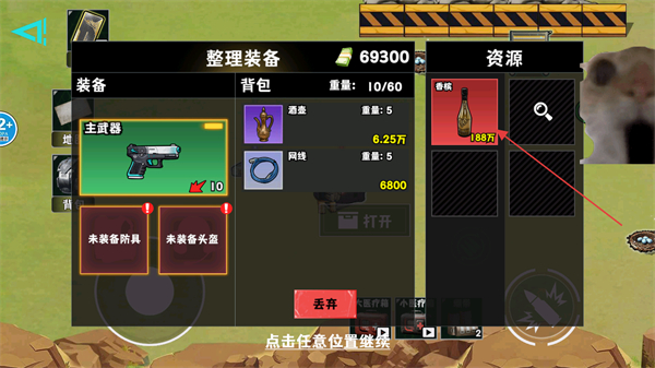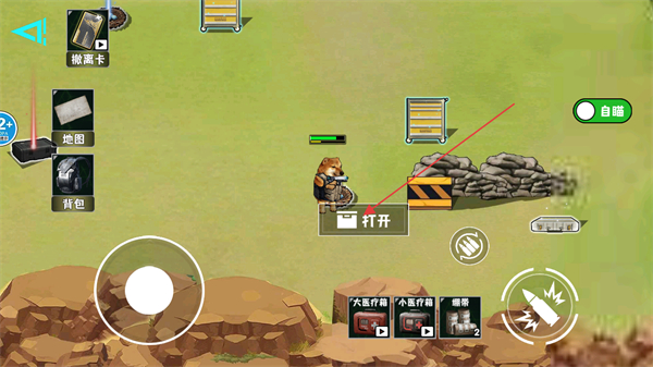 1、我们需要控制修勾在地图内寻找物资,点击打开按钮开启物资进行探索。