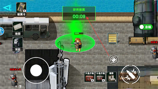 3、带着物品寻找绿色光圈撤离点,进入撤离点后将会开启倒计时,倒计时结束前不死亡即可安全撤离。