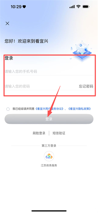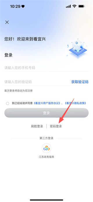 3、在登录页面,点击密码登录,切换至密码登录界面。