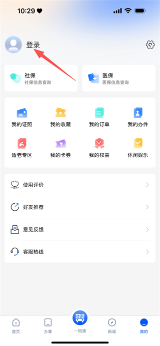 2、在个人中心页面,点击登录,进入登录选择页面。