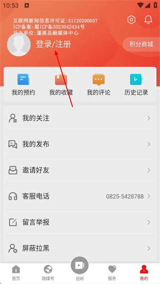 1、在书乡蓬溪的首页,点击底部的我的选项,进入个人中心页面。