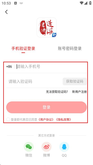 3、在登录页面,填写信息,勾选协议后点击登录完成登录。