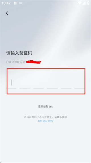 4、在输入短信验证码页面的输入框中填写收到的验证码,完成账号的登录操作。
