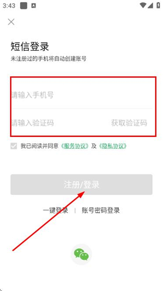 3、在登录页面填写手机号和验证码,勾选协议后,点击登录完成账号登录操作。