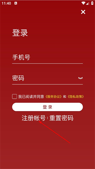 3、在登录页面,点击注册帐号,进入注册帐号页面。