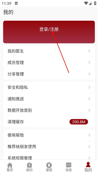 2、在我的页面,点击登录/注册,进入登录页面。