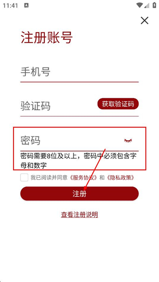 5、在注册帐号的页面,设置密码,点击注册,完成账号注册操作。