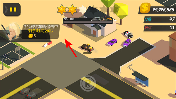通过同时点击屏幕左右两侧即可实现车辆倒车,避免一味向前冲撞导致被警车围堵,灵活调整行驶方向与状态,应对各种突发路况。