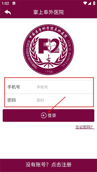 2、在个人中心页面,点击点击登录,进入掌上阜外医院登录页面。
