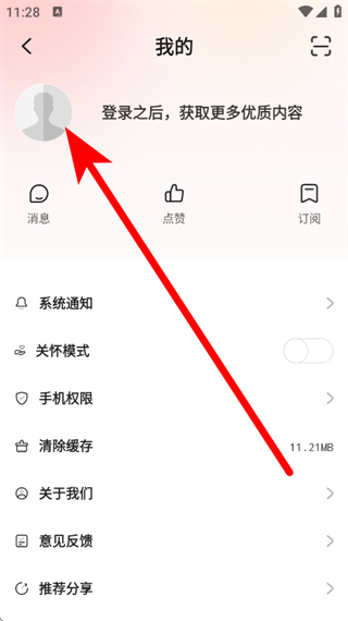 2、在我的页面,点击头像,进入登录界面。