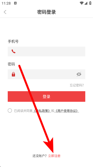 3、在密码登录页面,点击立即注册,进入注册页面。
