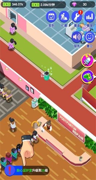 爱情大挑战是一款卡通风格的模拟经营工具,玩家将化身妇科医院院长,通过升级建筑、打造专属房间、引入高科技设备扩大医院规模,雇佣医生、护士、月嫂等职工优化管理,游戏还原真实医院操作流程,呈现孕妇怀胎十月的全过程,为产妇提供优质服务的同时,让玩家获得持续性收入,体验医院经营与孕期护理的双重乐趣。