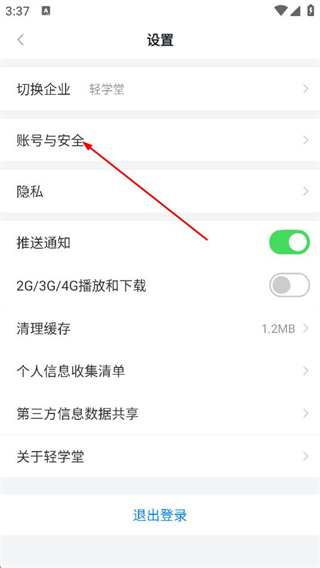 3、在设置页面,点击账号与安全,进入账号与安全页面。