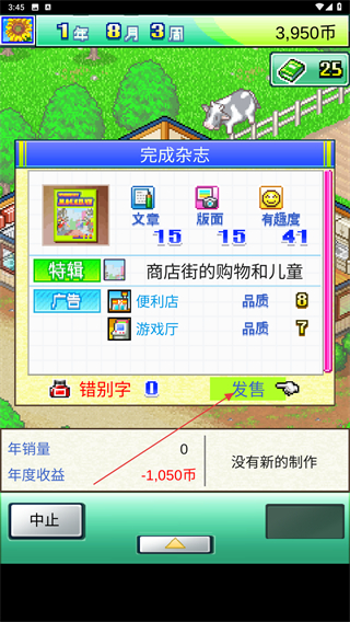4、成功完成的杂志可以点击下方发售按钮进行杂志的发售了,后续会持续记录杂志收益。
