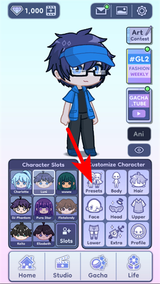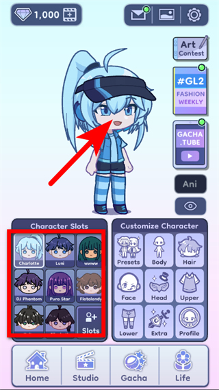 1、在加查人生2主界面,点击CharacterSlots区域的角色。