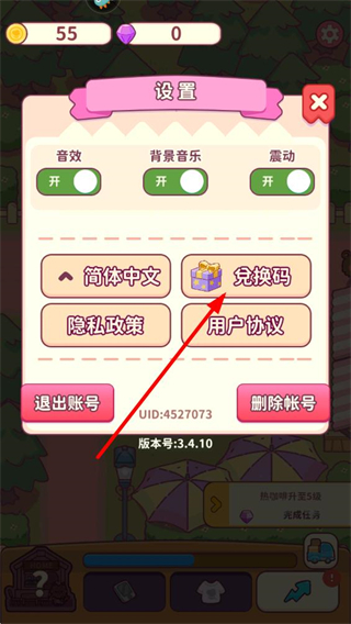 2、在设置界面中,找到兑换码选项,带有礼盒标识,点击后进入兑换码输入页面。