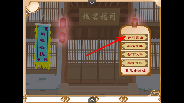 1、点击开门营业的选项,进入游戏的核心玩法流程,开启经营相关的冒险。