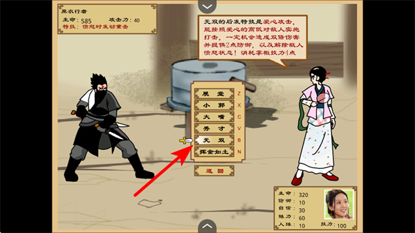每位角色都有专属技能与成长路径,涵盖武功秘籍、菜谱、刺绣、构思等多种类型,技能升级需积累修为或满足特定条件,应对各类战斗与事件。