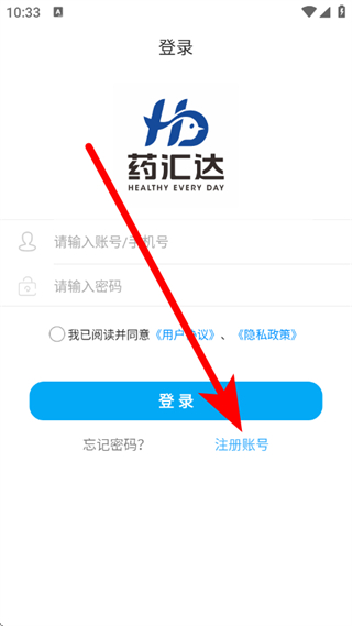 2、在登录页面,点击注册账号,进入注册页面。