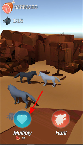 4、狩猎进度完成后,点击Multiply选项,消耗积累的资源触发种群繁殖,提升狼群数量的同时解锁更高等级的玩法,实现快速升级的目标。