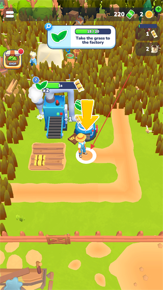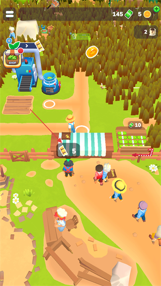 4、操控角色背着加工好的干草堆到摊位上进行售卖,顾客头顶会有需求物品和数量来自行购买。