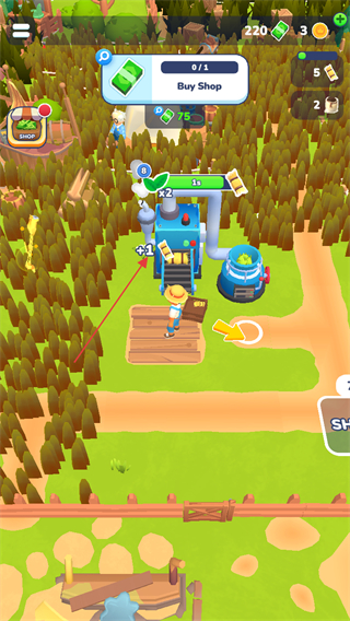 3、在机器前的木板上可以获取到加工好的干草堆,可以点击机器进行升级提高工作效率。