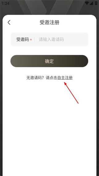 2、在受邀注册页面,点击自主注册选项,进入自主注册页面。