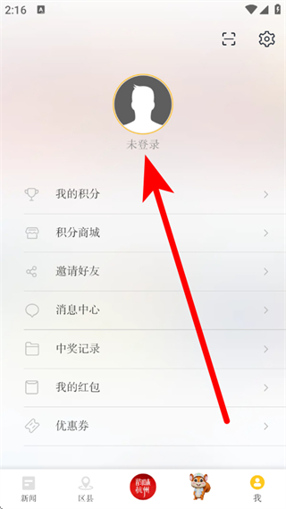 1、打开杭州新闻,在主界面点击底部我,进入个人中心页面。