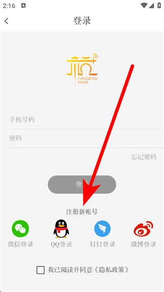 3、在登录页面,点击注册新账号,进入注册新账号页面。