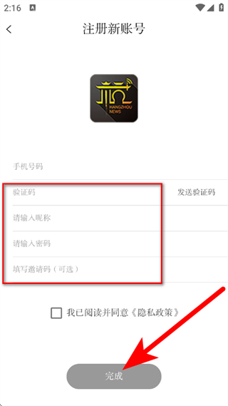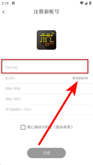 5、输入验证码,设置密码,勾选协议后,点击完成,完成账号注册。