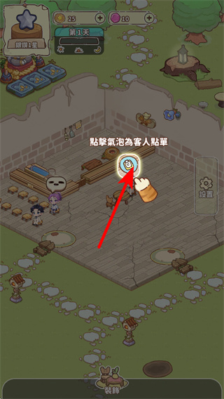 4、完成装饰布置后,根据提示引导客人前往对应的功能区域,让客人体验场景内的设施,用于后续的建筑拓展。