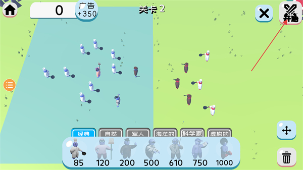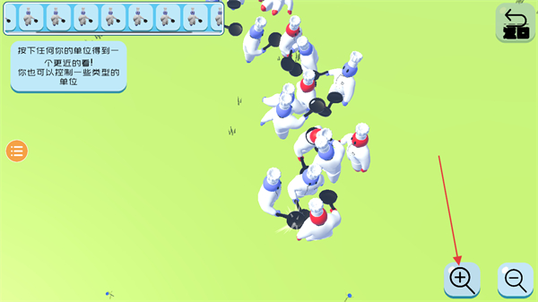 4、小人开始战斗后,可以点击右下角的缩放按钮调整视角大小,或是滑动屏幕进行观看。