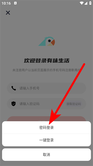1、打开有味生活,在我的页面,点击立即登录,进入登录界面。